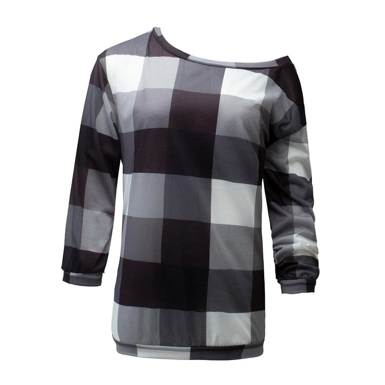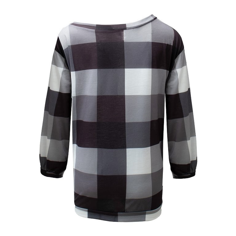 Stylish blouse with a semi-circular neckline in an original shirt pattern.