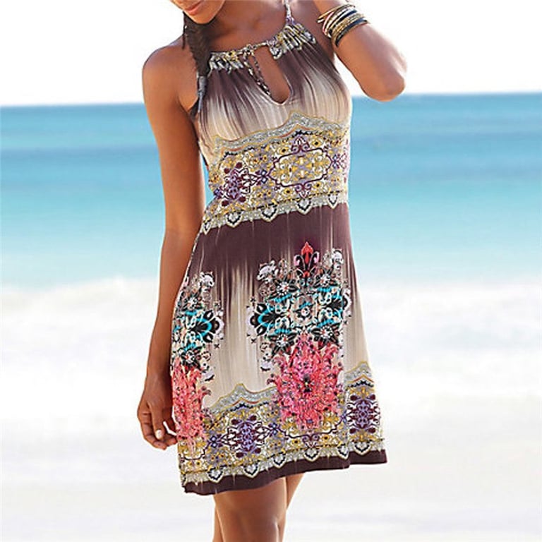 Satin loose airy beach women's summer dress with tie.