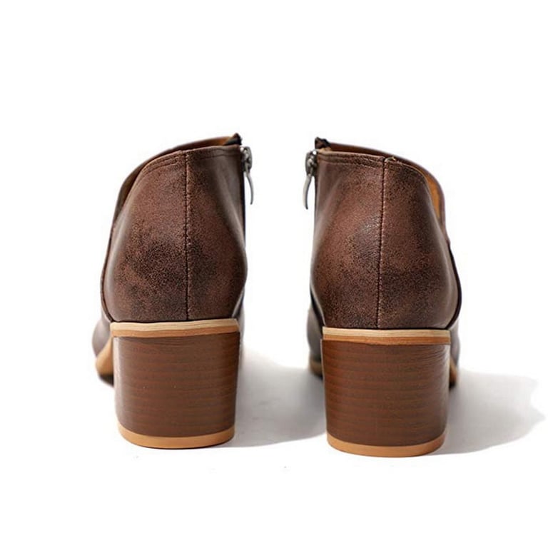 Women's ankle boots with cut-outs and a zip fastening on the inner side. The boots feature a wide, stable heel with a height of 5 cm. Leather look. Ideal for spring/autumn. Available in three colour options.
