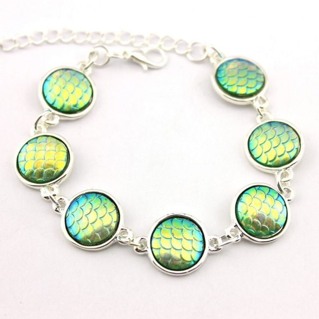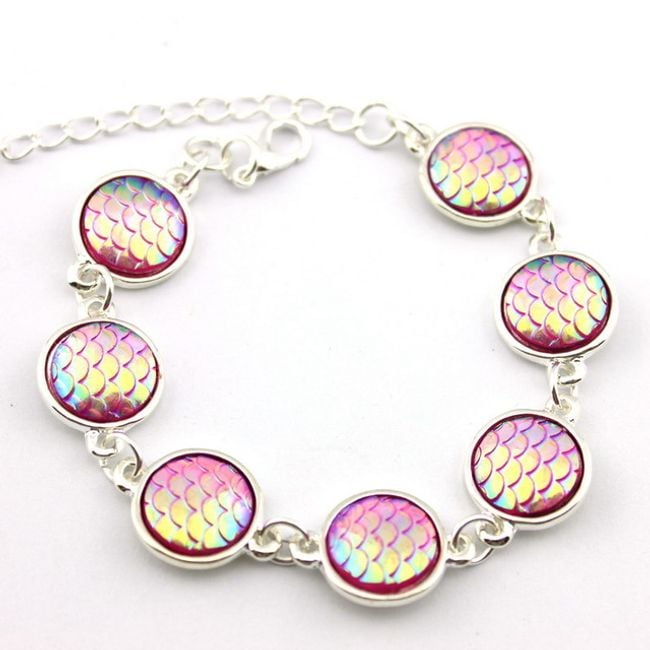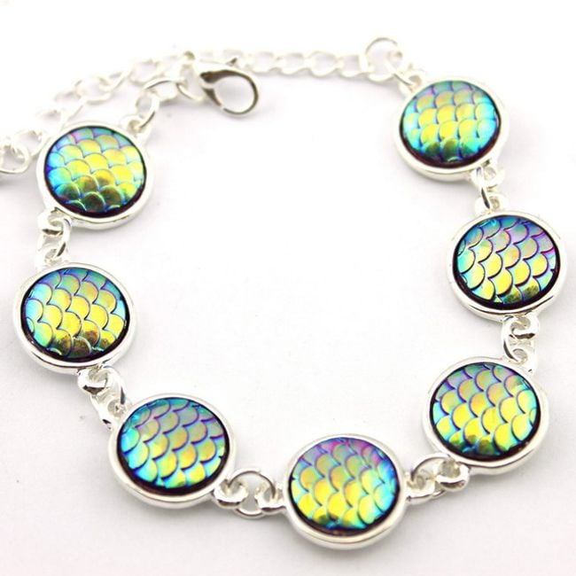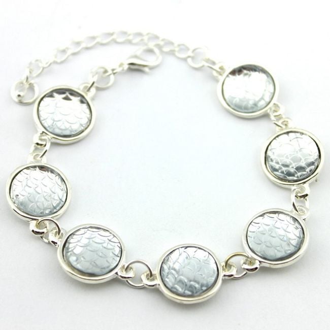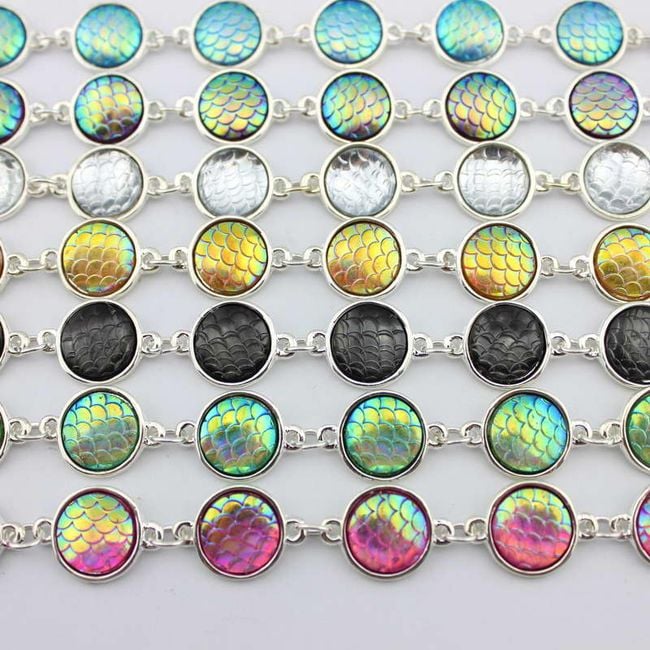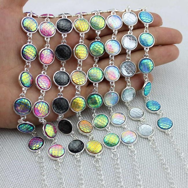 The bracelet featuring scale-like charms serves as an interesting decoration. Choose from 8 colours.