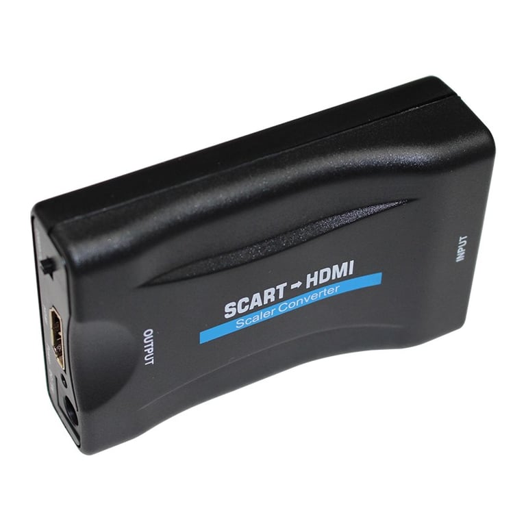 Scart 1080P to HDMI video and audio converter adapter for HD TV, DVD, Sky Box STB Plug and Play with DC cable.
