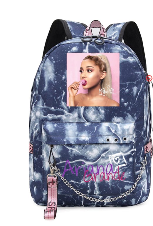 • Trendy school backpack featuring a popular Ariana Grande print.