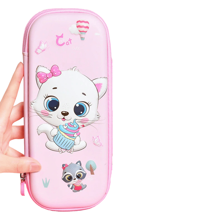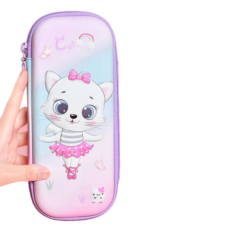 The school case with a cat features a flap with loops for writing utensils and a zip pocket inside. It is made from high-quality materials. The cute design will catch everyone's eye at first glance.