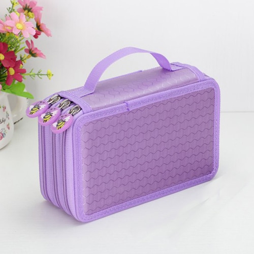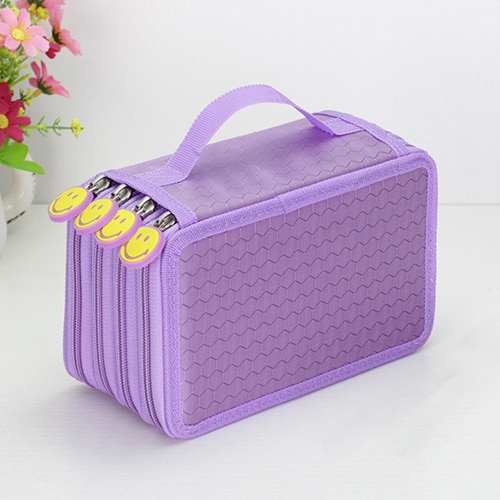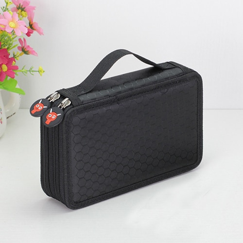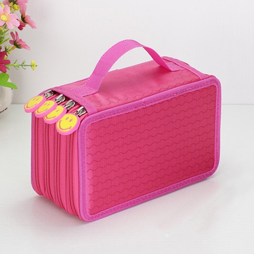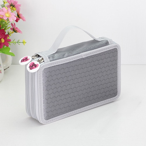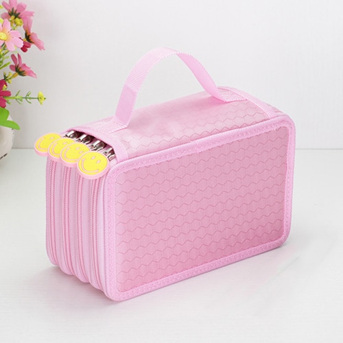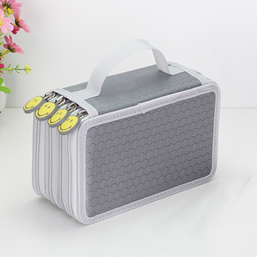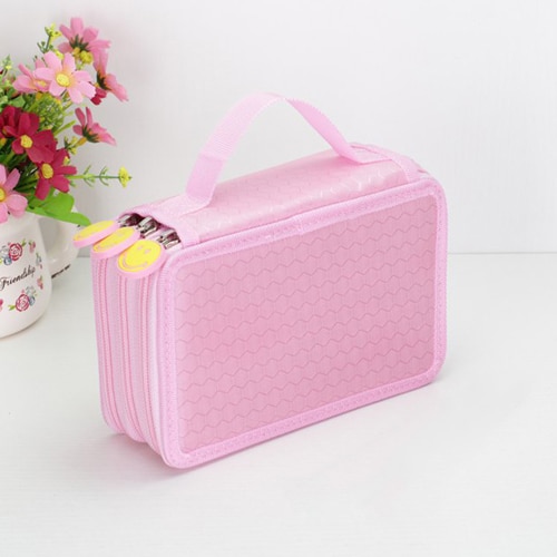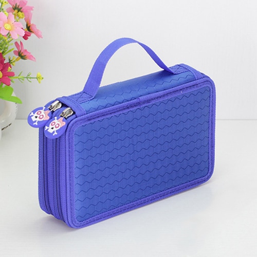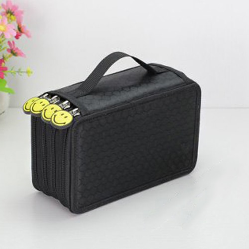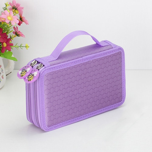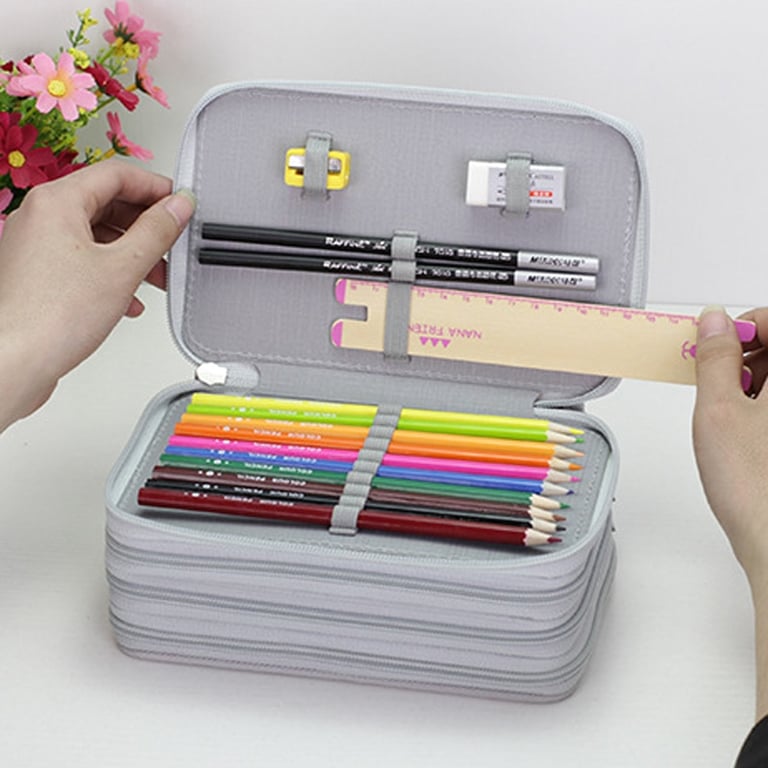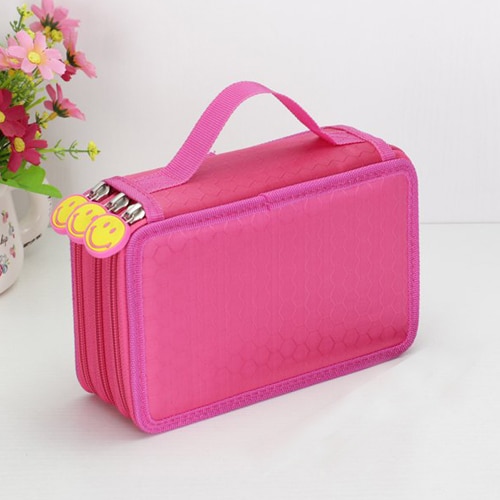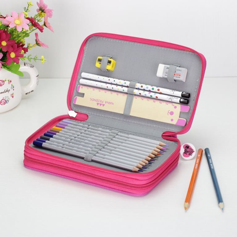 Large-capacity pencil case for writing instruments with three pockets.