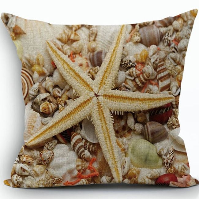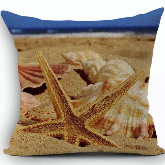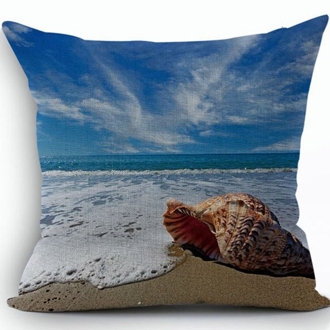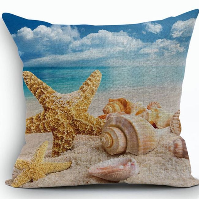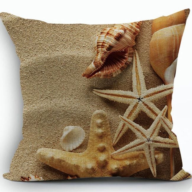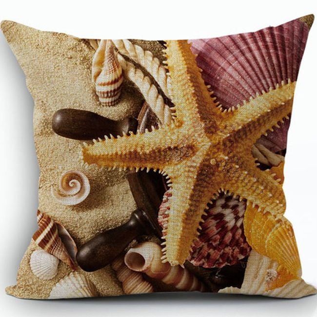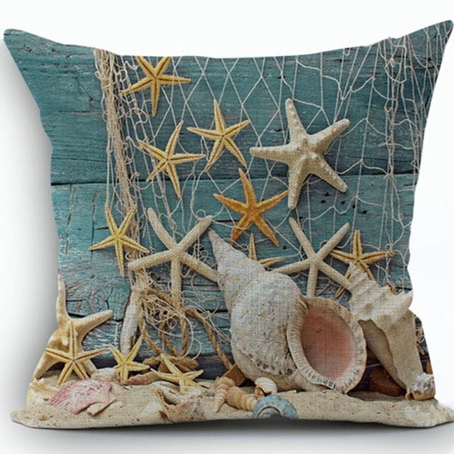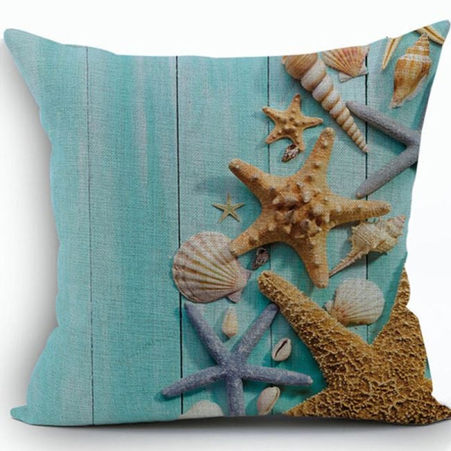 The cover has a classic square shape, is inspired by a marine theme, and is suitable as an accessory for the home.