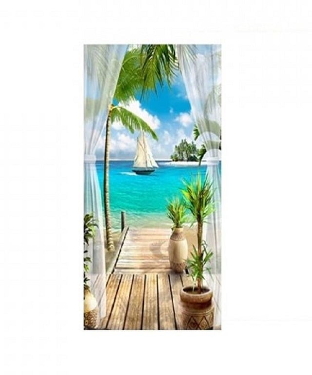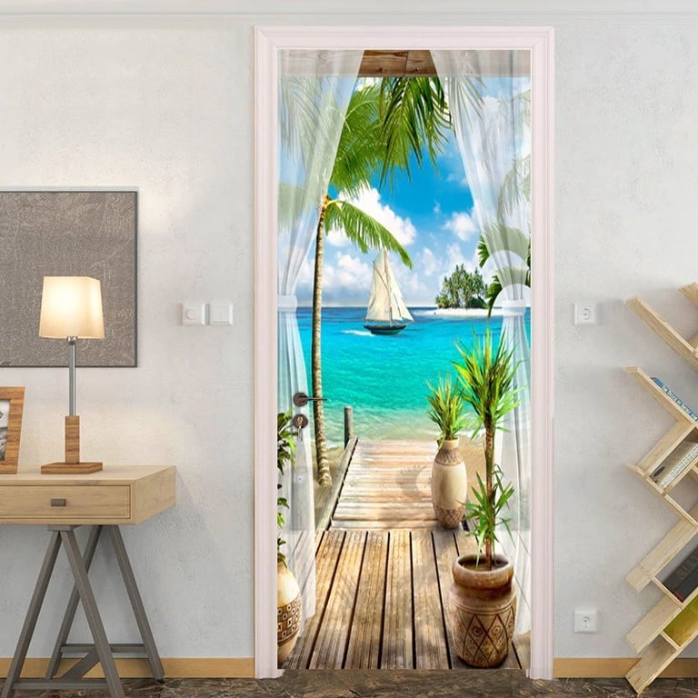 Self-adhesive door wallpaper with a sea motif