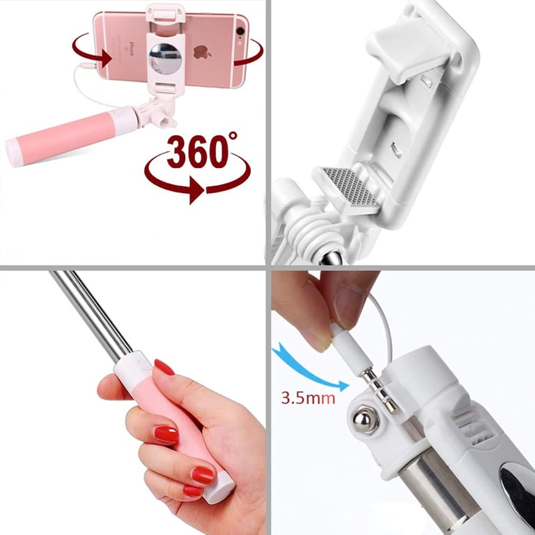 Take the perfect selfie with a handy mirror and control button on the stick. Its compact size ensures you always have the device with you. You can easily connect your phone using a 3.5 mm jack.