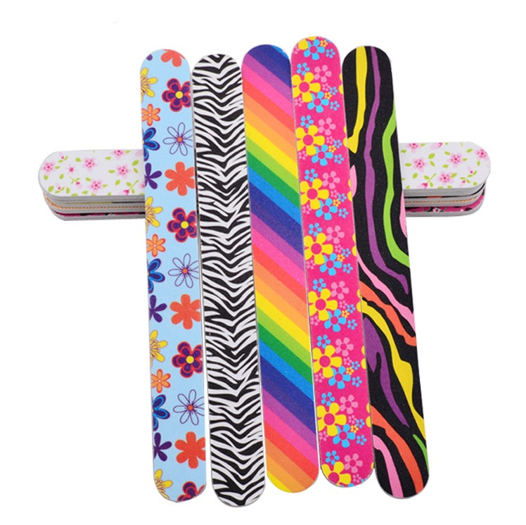 Double-sided coloured nail files. Various patterns.