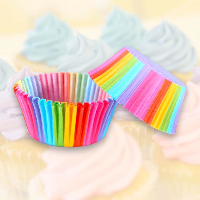 Beautiful rainbow muffin and cupcake cases that will attract not only children. They will beautifully brighten up any celebration!