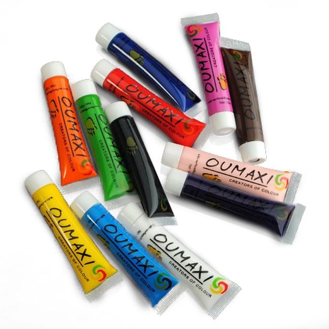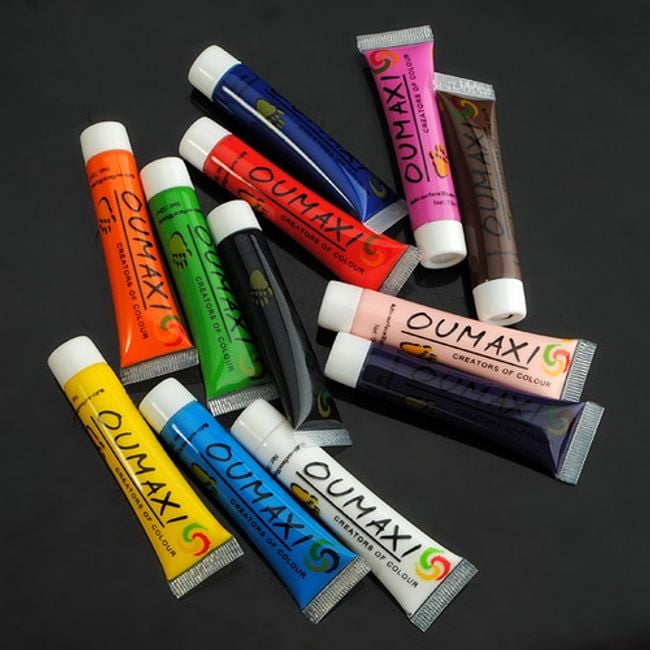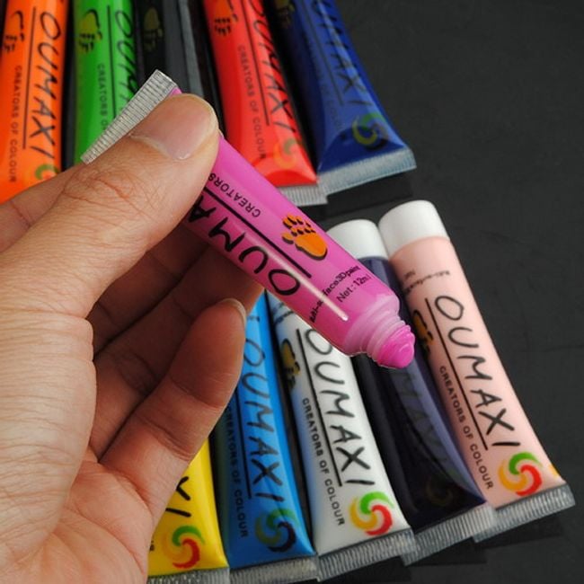 Nail colours in tubes have a thicker consistency than liquid nail polishes. They can be used to create three-dimensional decorations on both natural and artificial nails. The set includes 12 tubes of different colours.