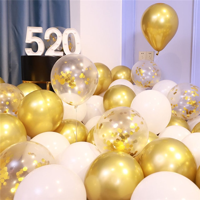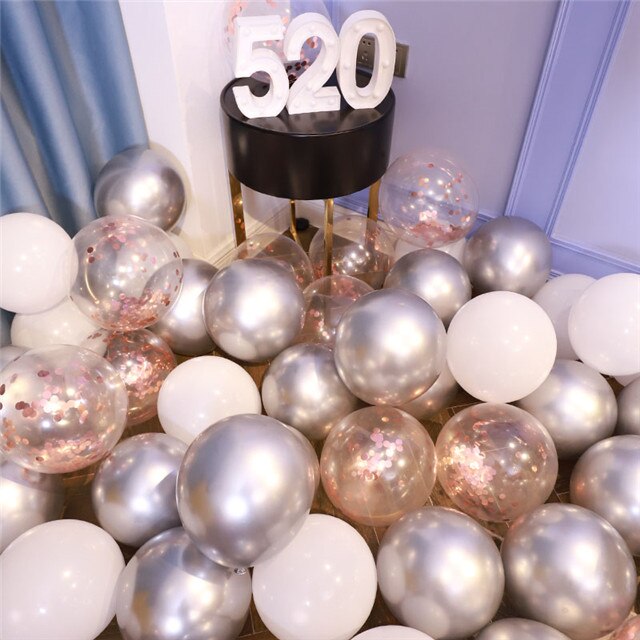 • The balloons are a mix of coloured balloons and confetti balloons