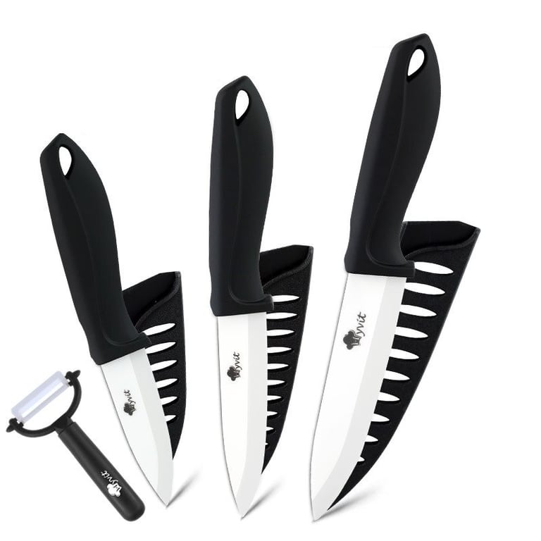 A set of kitchen knives that is suitable for any kitchen. The knives are made of ceramic. They are resistant to corrosion. They have excellent sharpness. Ideal for vegetables, fruits, fish, and meat.