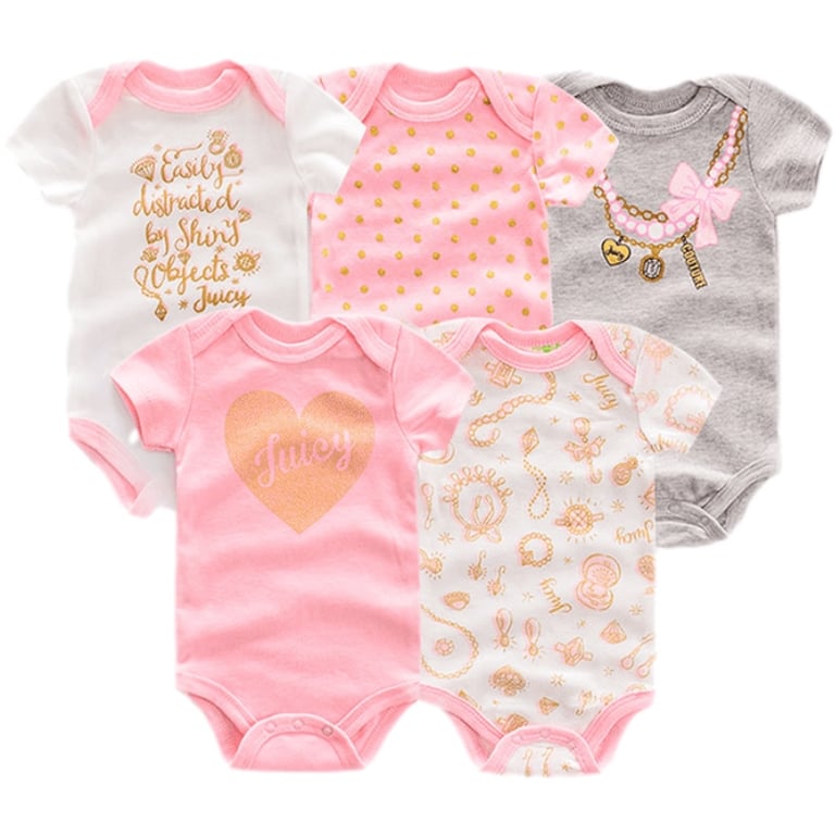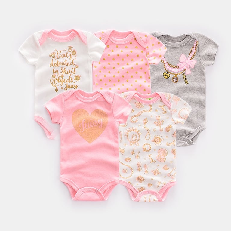 Set of 5 short-sleeved baby bodysuits