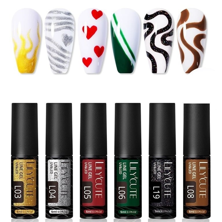 With this set of gel polishes, you can create salon-quality nails. Suitable for gel, acrylic, and natural nails. The volume of each bottle is 5 ml. The polish is cured using a UV or LED lamp. You can choose from 8 colour combinations.