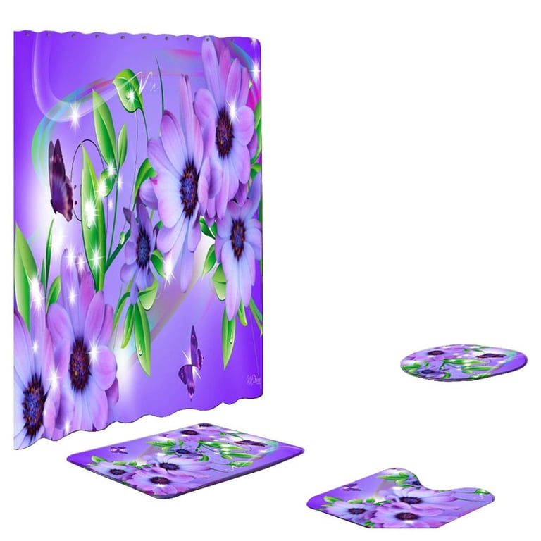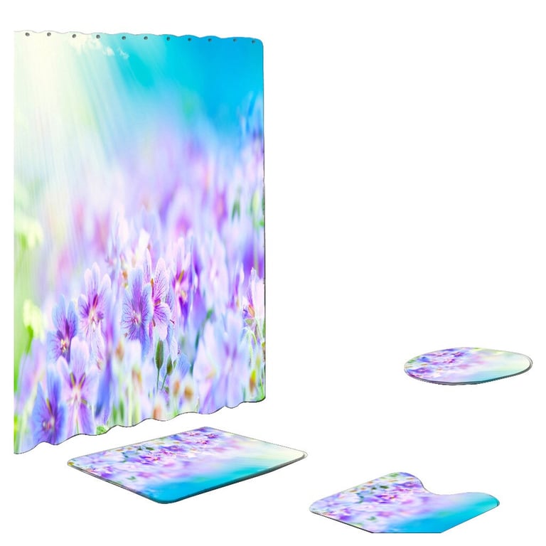 Bathroom Mat and Shower Curtain Set 4 pcs