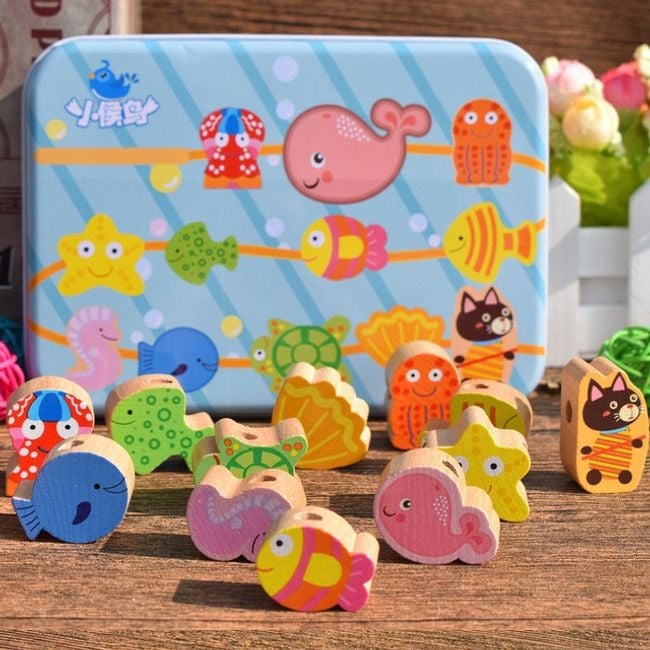 Set of children's wooden threading beads