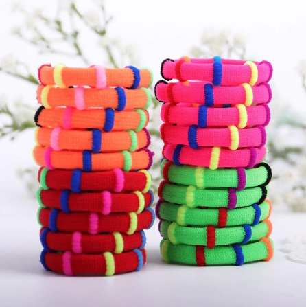 A set of hair ties in various colours that hold well and do not damage the hair.