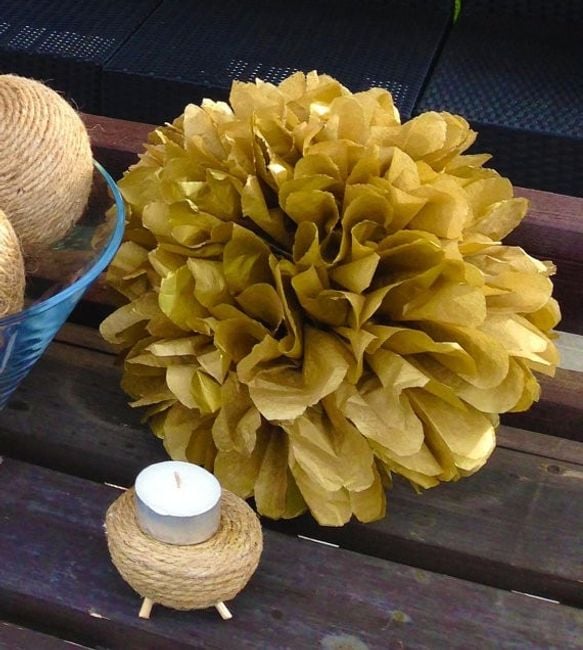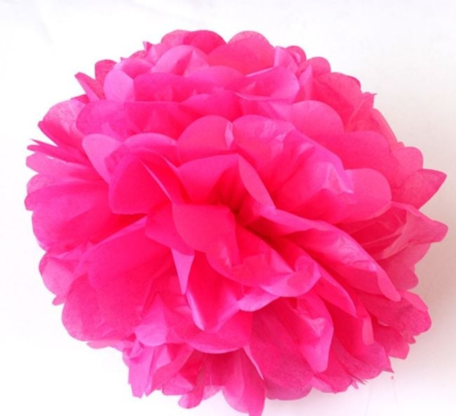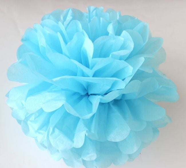 The set includes ten decorative pom poms that can be hung around the home or in the room where the celebration takes place.