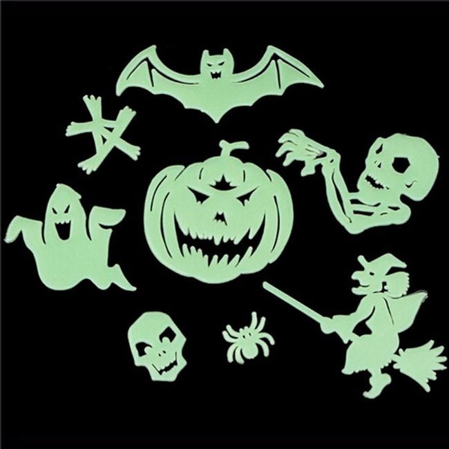 The set of fluorescent Halloween stickers will delight children, who can use them to decorate their rooms. The set includes eight different stickers. If the stickers are exposed to light during the day, they will glow at night.