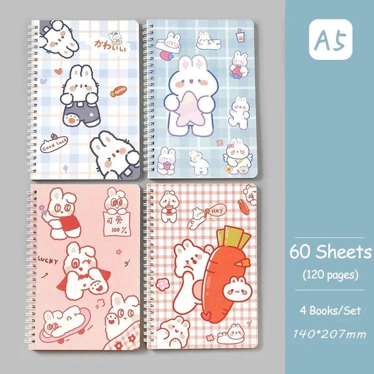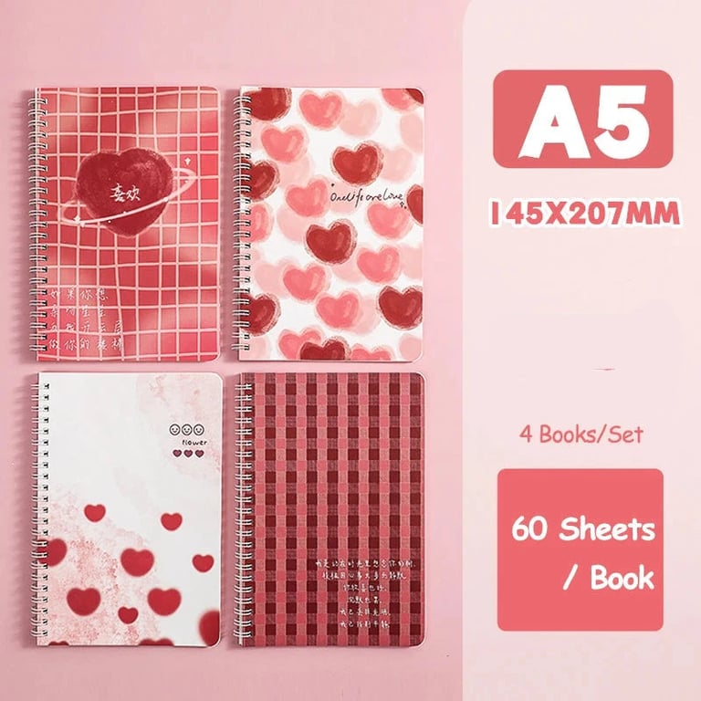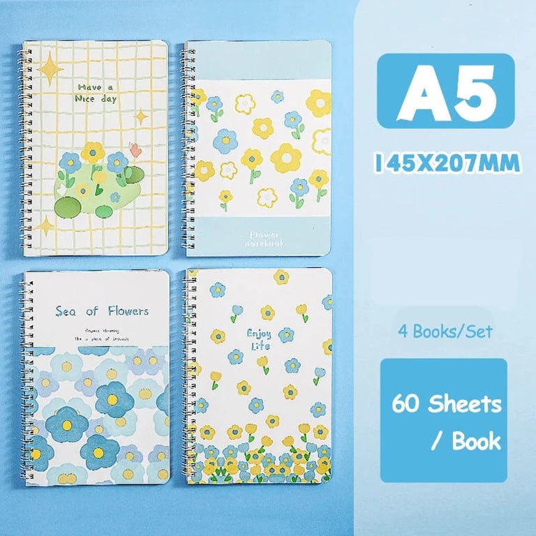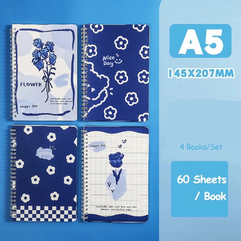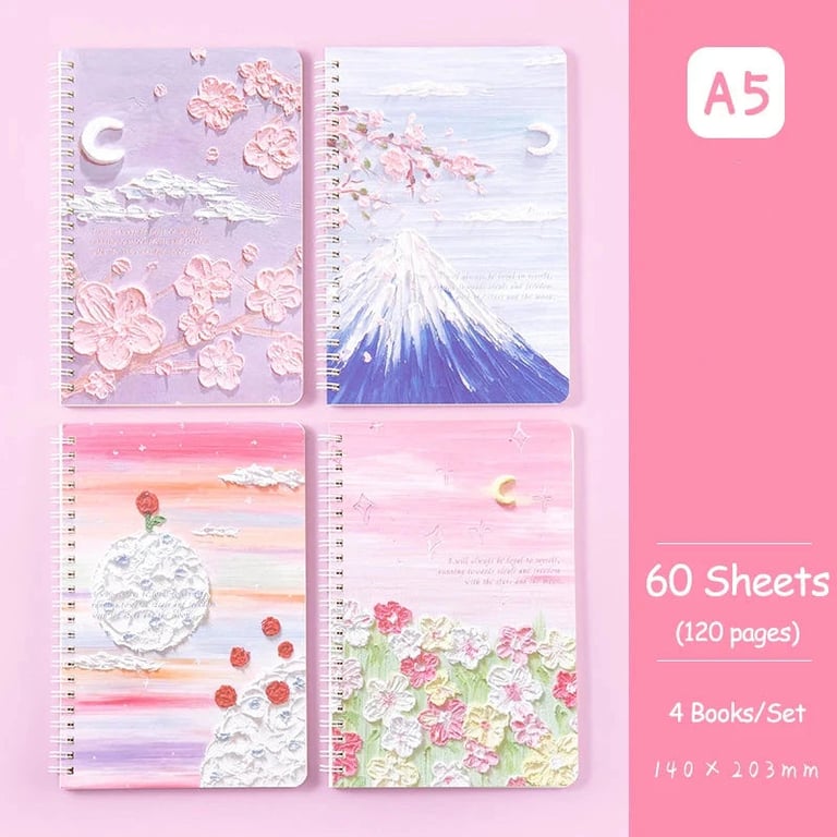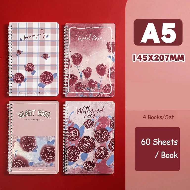 Set of four designer notebooks with ring binding.