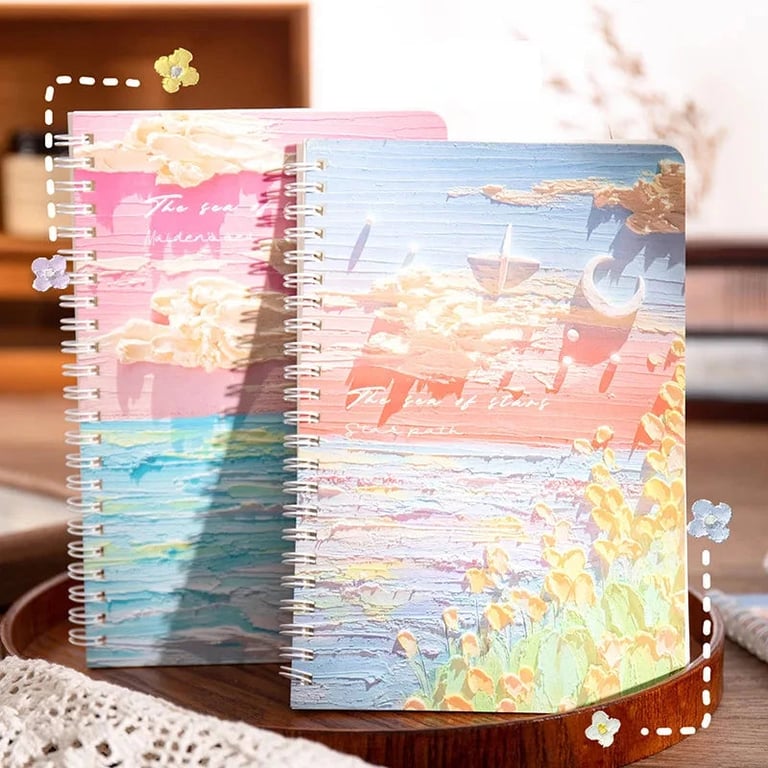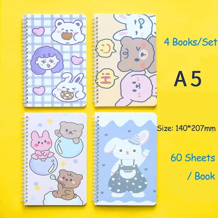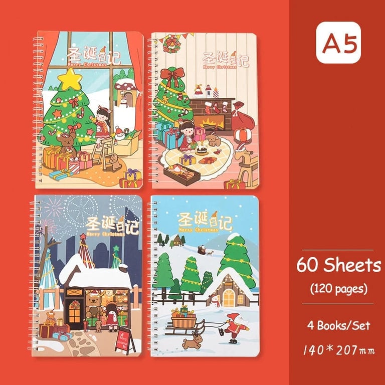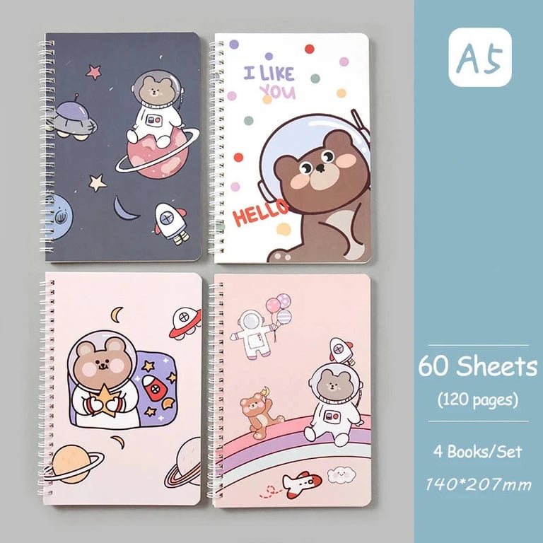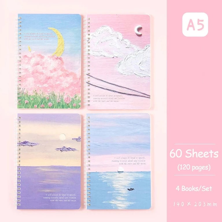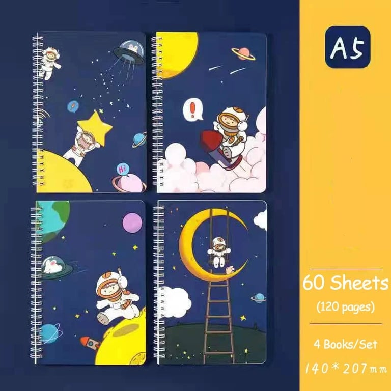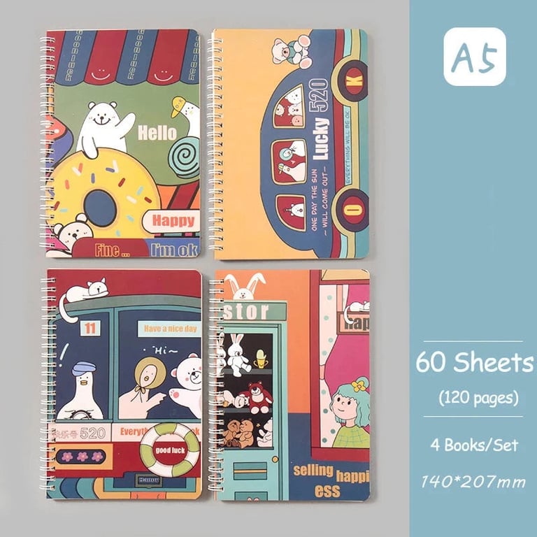 Set of four designer notebooks with ring binding.