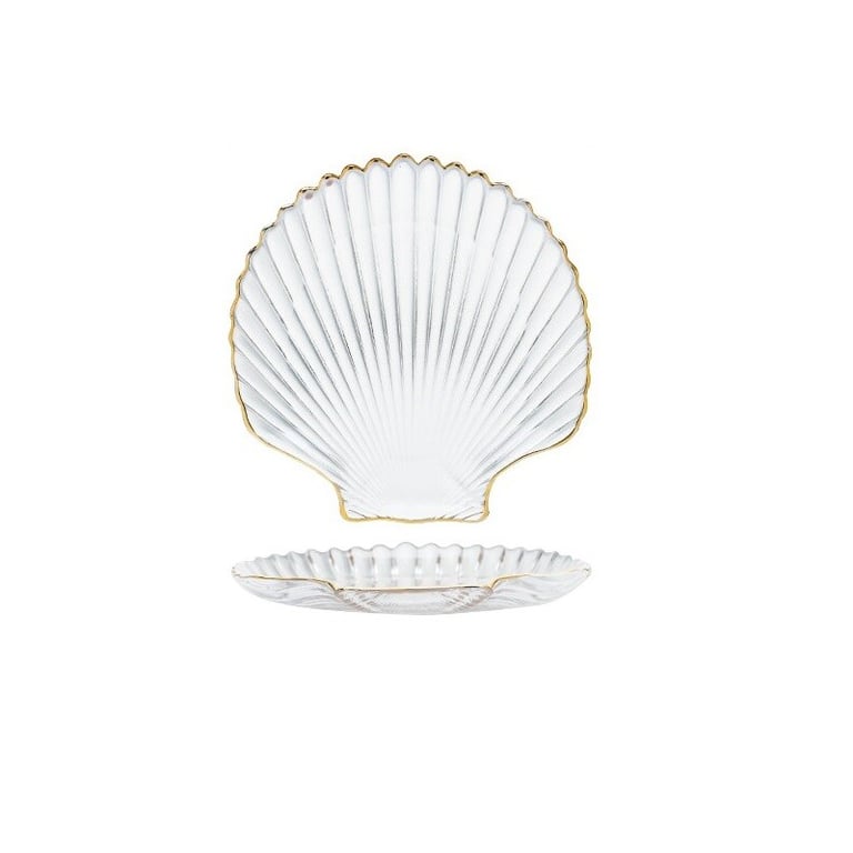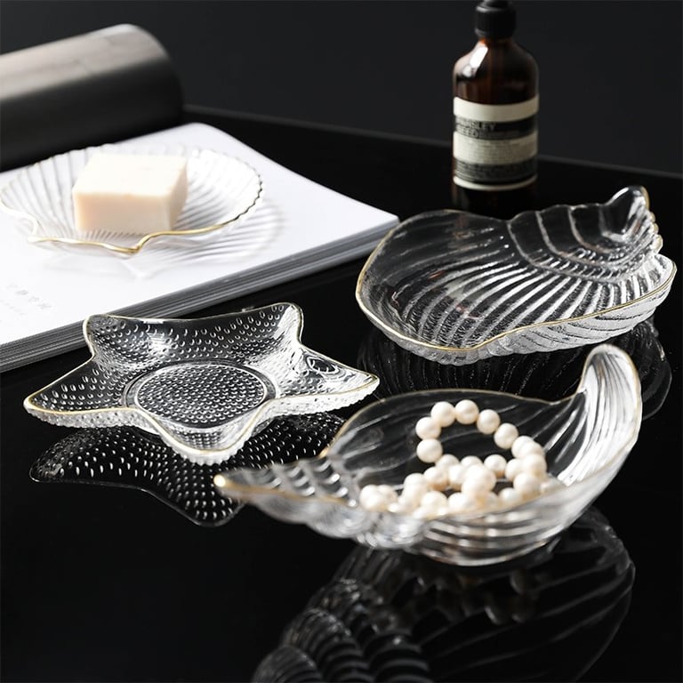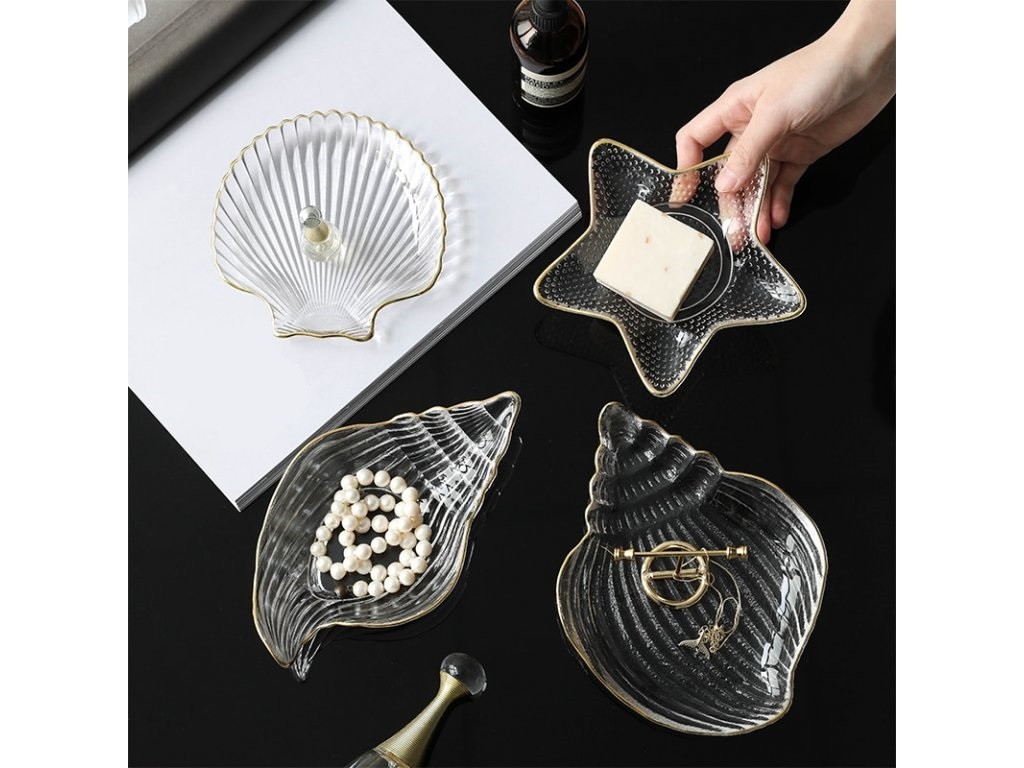 The set includes decorative plates in the shape of a sea star and three types of shells.