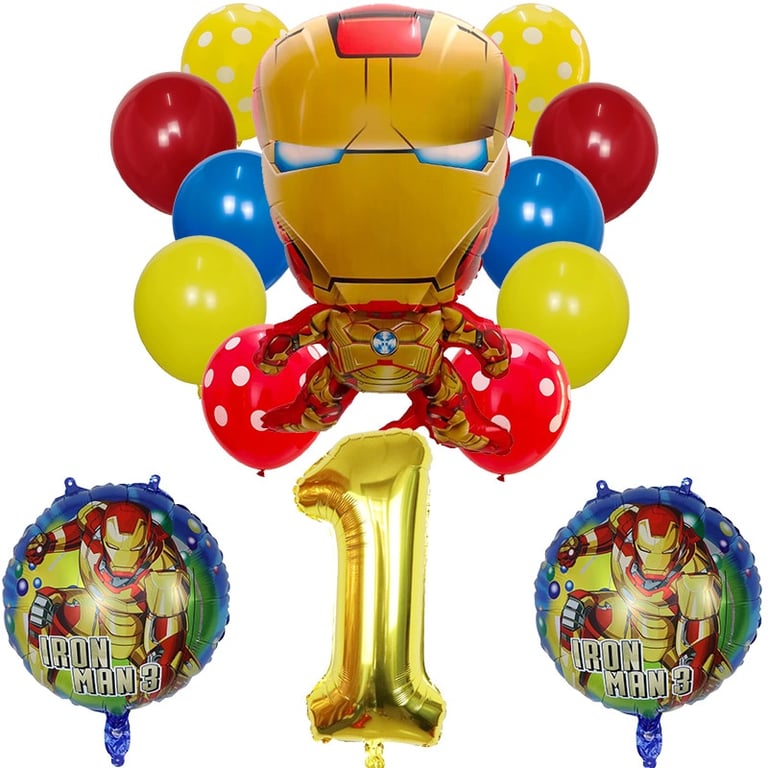 Inflatable balloon set with number and superhero Iron Man 14 pcs