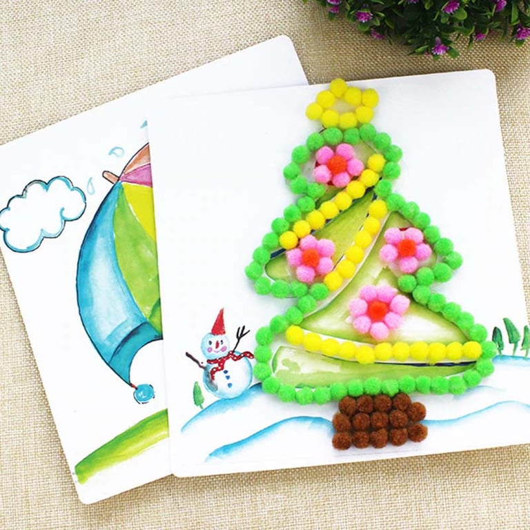 Colourful decorative balls that are suitable for scrapbooking, as well as for various other crafts, not just with children.