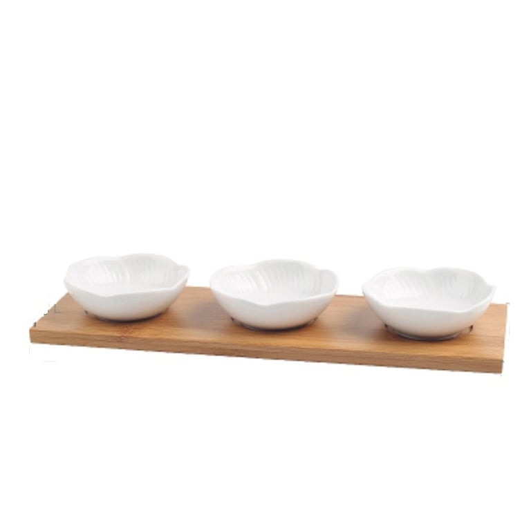 Set of porcelain bowls with tray 3 pcs
