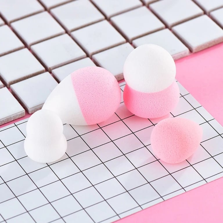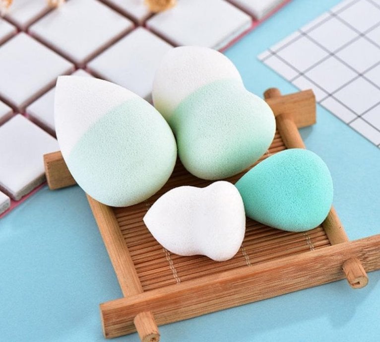 Set of 4 high-quality make-up sponges. The sponges come in various shapes, sizes, and colours.