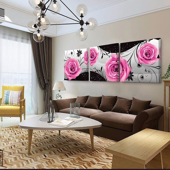 The set includes three paintings with a romantic rose motif, suitable as decorations for your home.