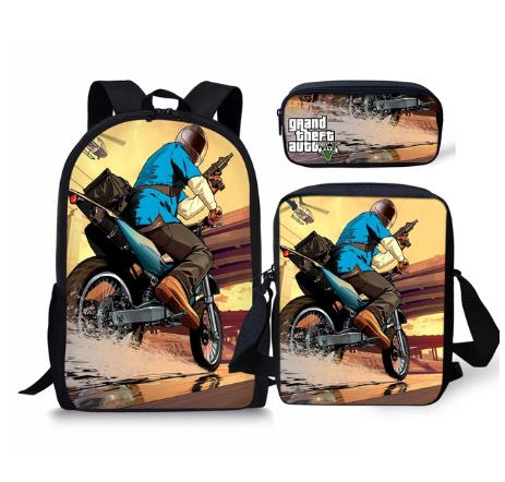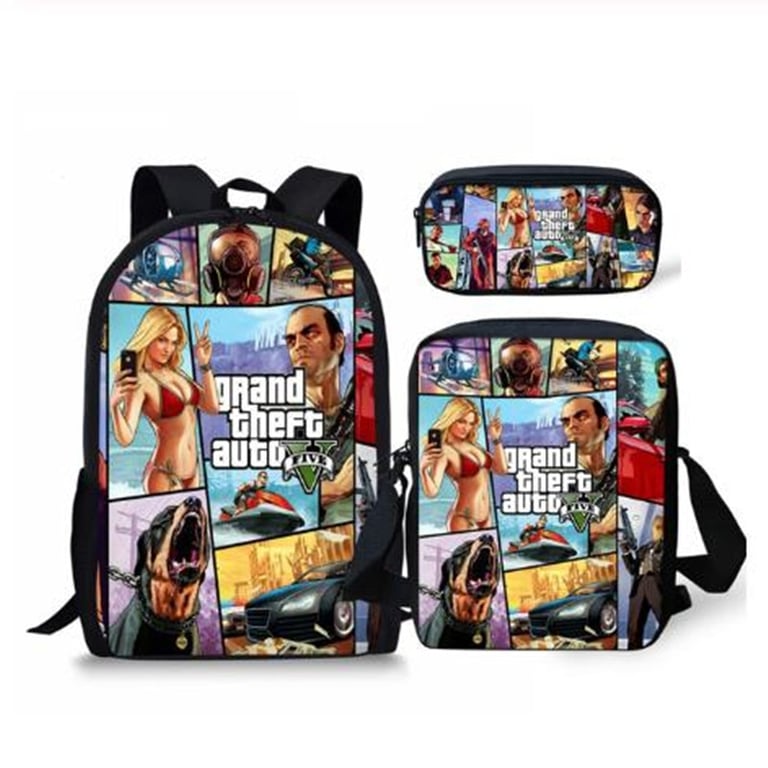 Set of school bags with a cool Grand Theft Auto print.