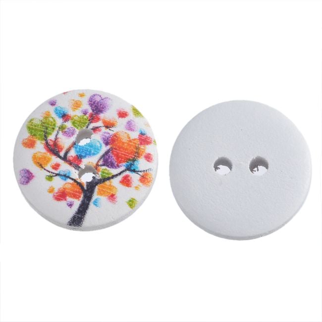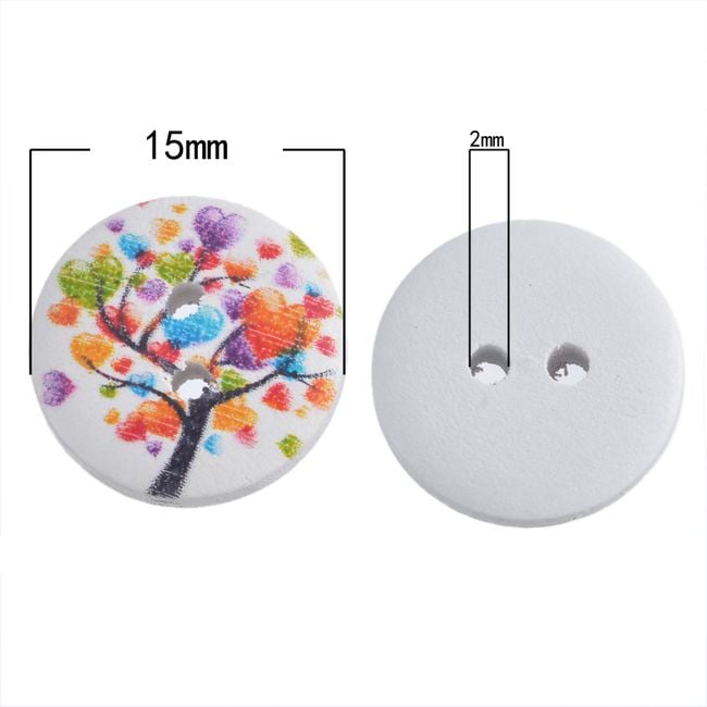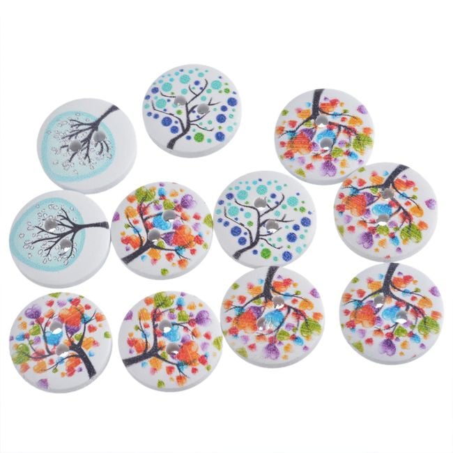 Set of wooden buttons with beautiful colourful patterns.