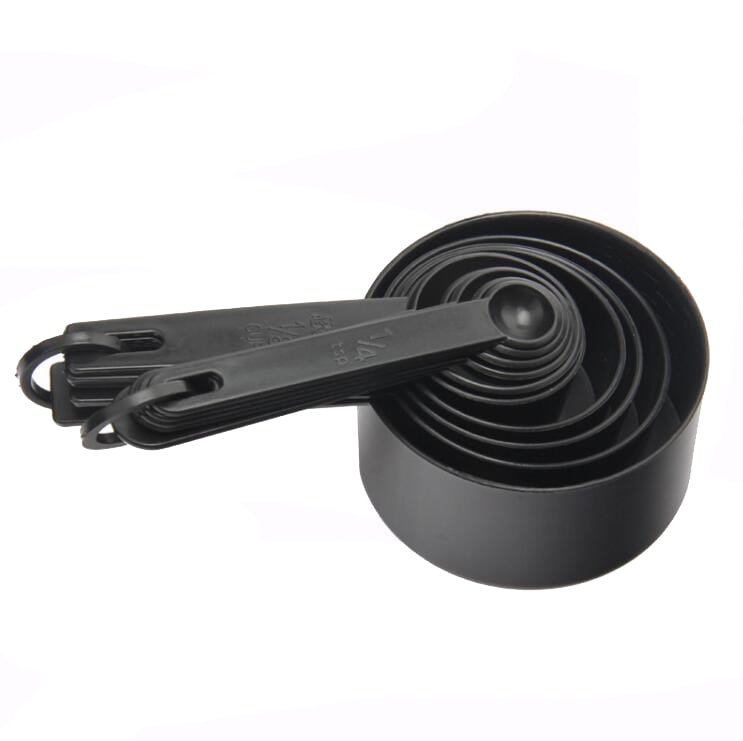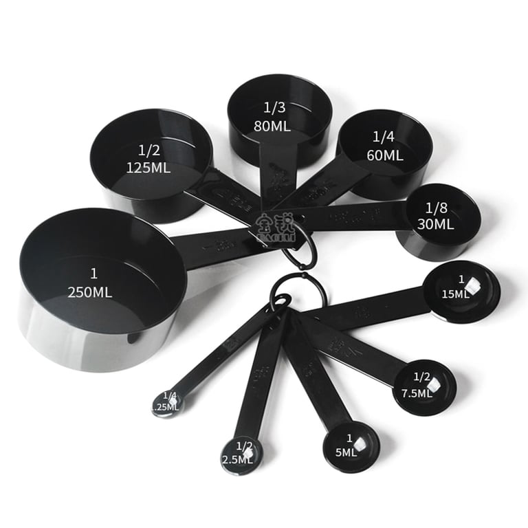 A set of spoons with measuring cups. Available in several variations. With these handy measuring cups, you no longer need to carry a scale everywhere!