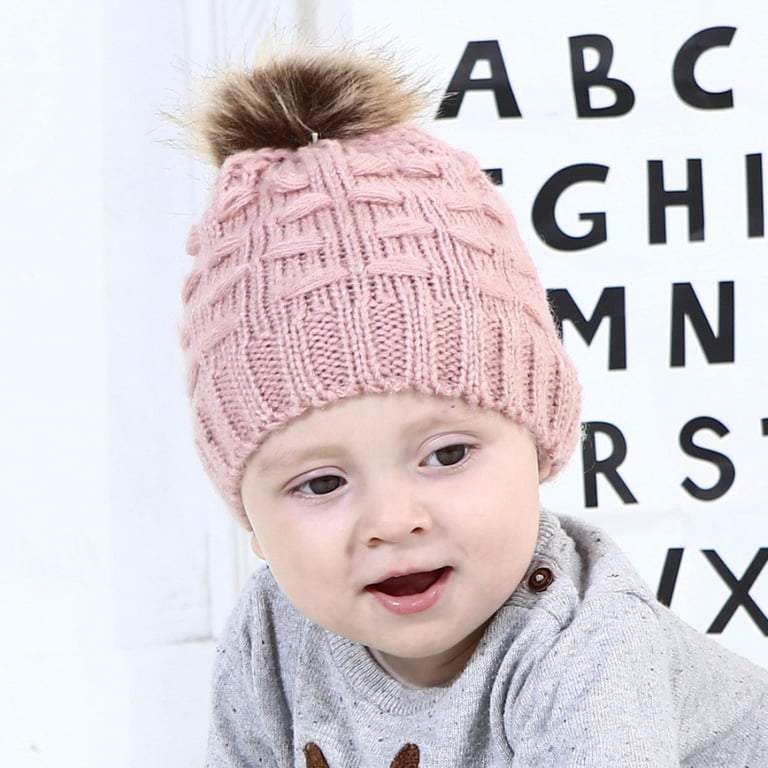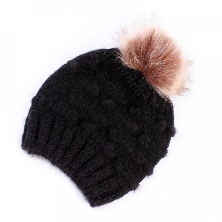 Children's knitted hat with a large fluffy pom-pom. Available in several colour options.
