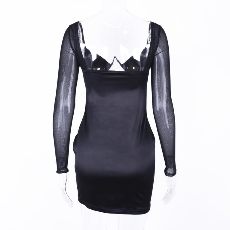 Women's dress with long sheer sleeves.