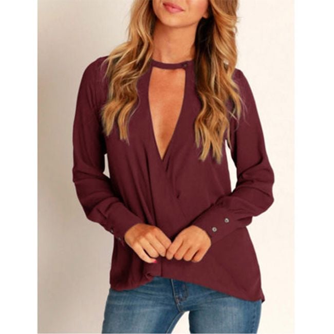 The sexy long-sleeve blouse features an ingenious cut in the chest area.