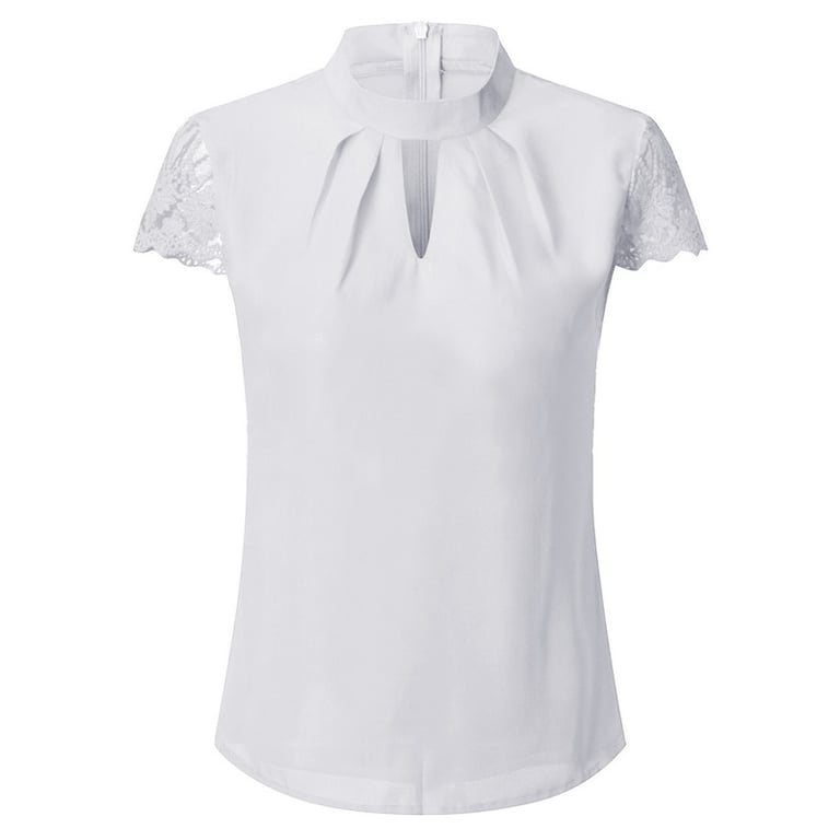 Beautiful blouse with an amazing design. It has short lace sleeves and a collar with a small neckline.