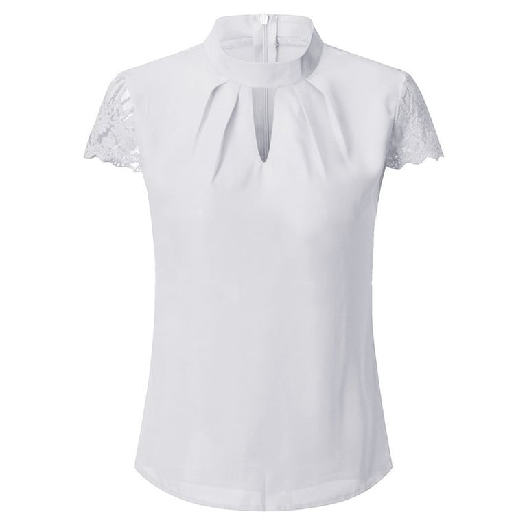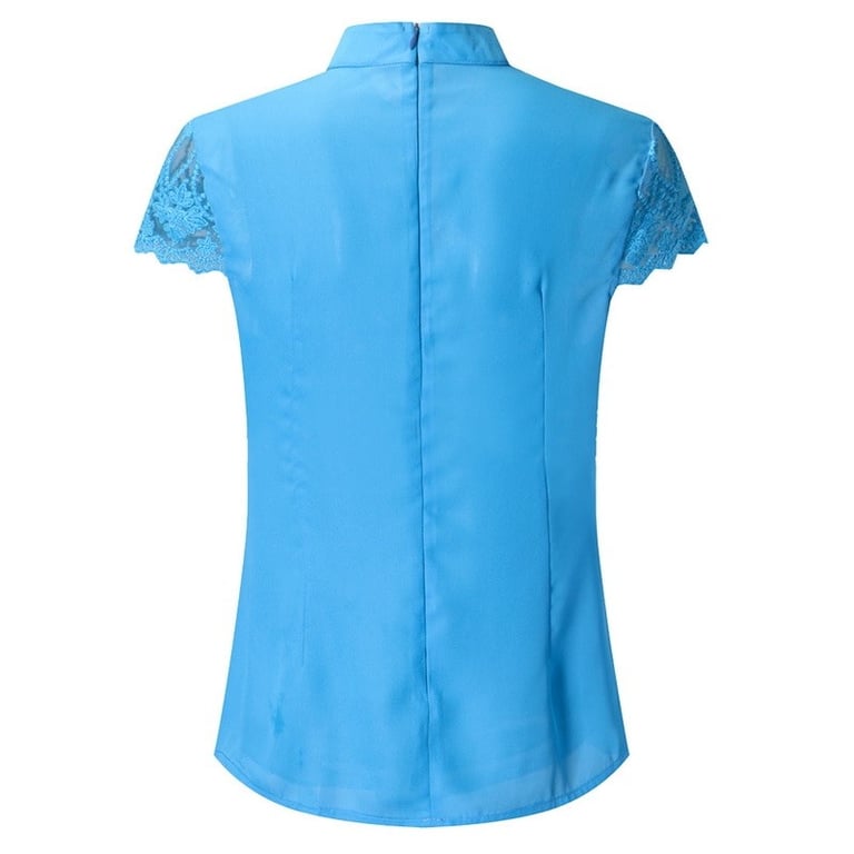 Beautiful blouse with amazing design. It has short lace sleeves and a collar with a small neckline.