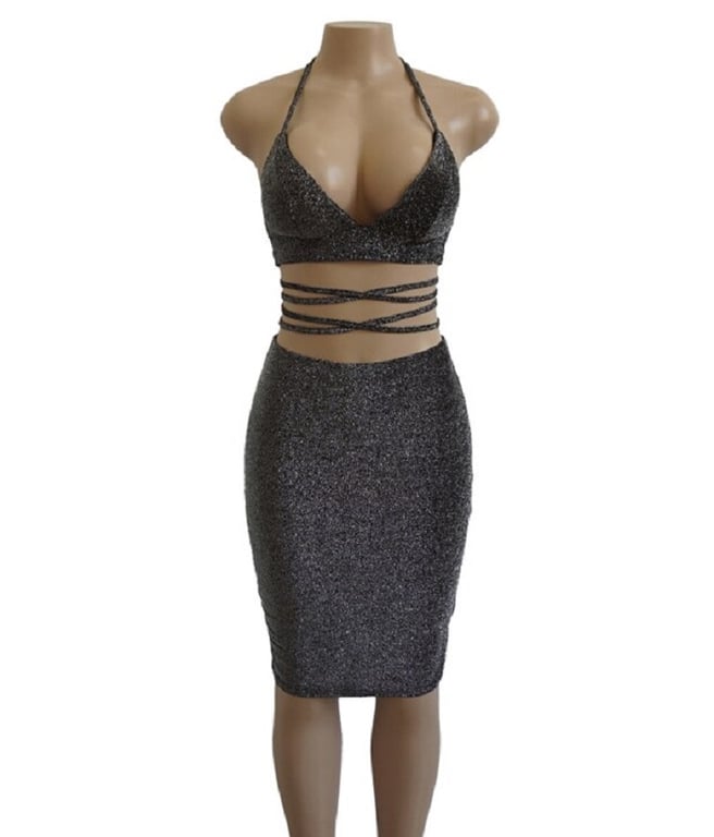 Luxury women's dress made from stretchy glitter material.