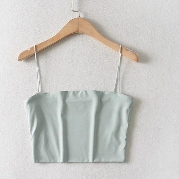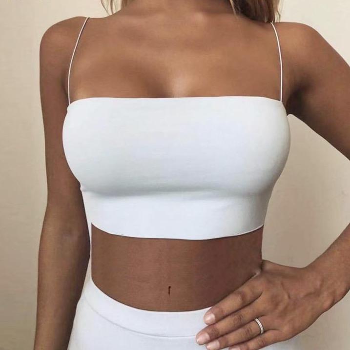 Cotton sexy crop top with spaghetti straps. Very short cut. Several super colours to choose from.