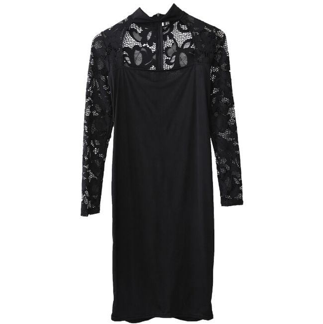 The dress with lace sleeves and a revealing neckline will make you the star of the evening.