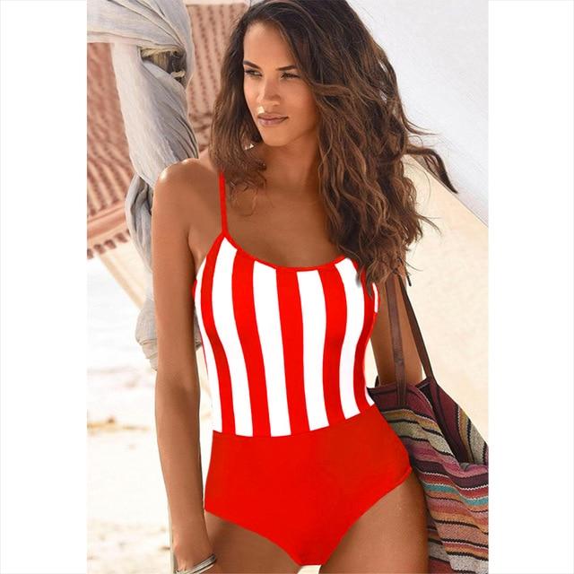 Sexy one-piece swimsuit made of spandex and polyester. Round back neckline and decorative straps with ruffles.