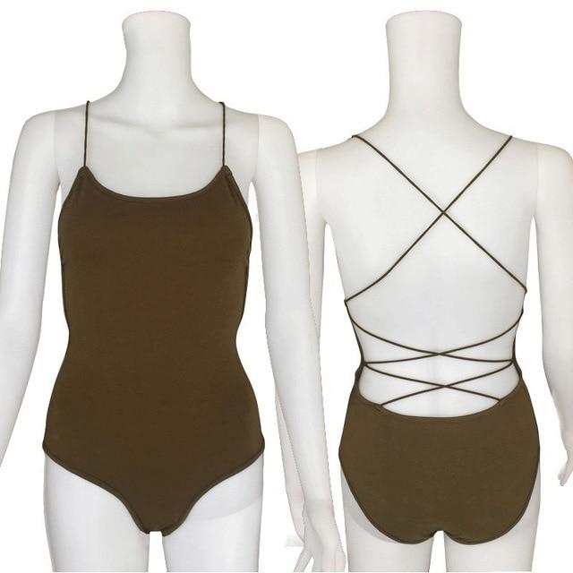 Beautiful sexy cotton summer bodysuit. With crossed straps at the back. Available in brown, black or red.
