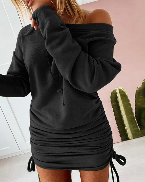 Sexy women's comfortable hoodie dress with drawstring