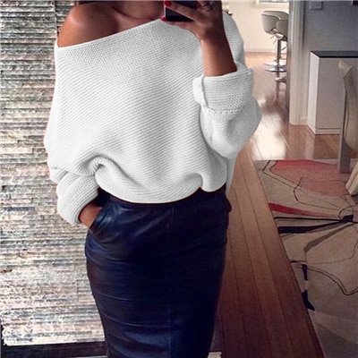 Sexy women's sweater with an exposed shoulder