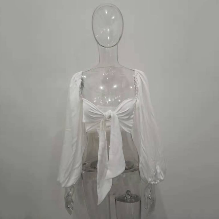 It goes with almost everything. Thanks to the loose airy sleeves and the short top, it is more suitable for summer and spring days. It can be combined with a skirt or shorts.