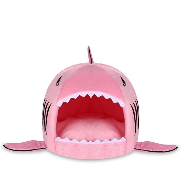 Shark-shaped cat bed in various colours.