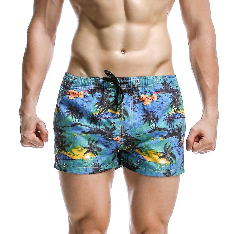 Men's swim shorts with an elasticated waistband and side pockets. Printed with a colourful pattern. Available in multiple variants.