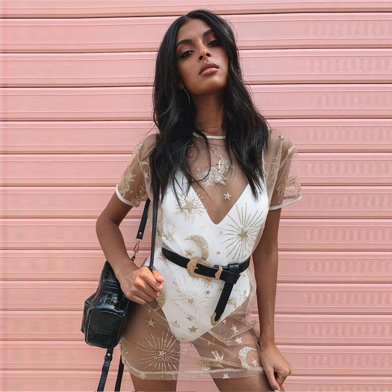 Sheer Mini Dress with Sequins